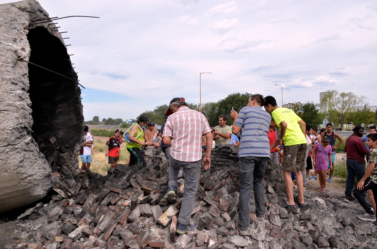 En medio del operativo de seguridad para evitar daños se cumplió con la polémica intención de los responsables del loteo que pretenden habilitar en ese sector. Alrededor de las 17.15 de hoy, la histórica estructura quedó reducida a escombros en el suelo.