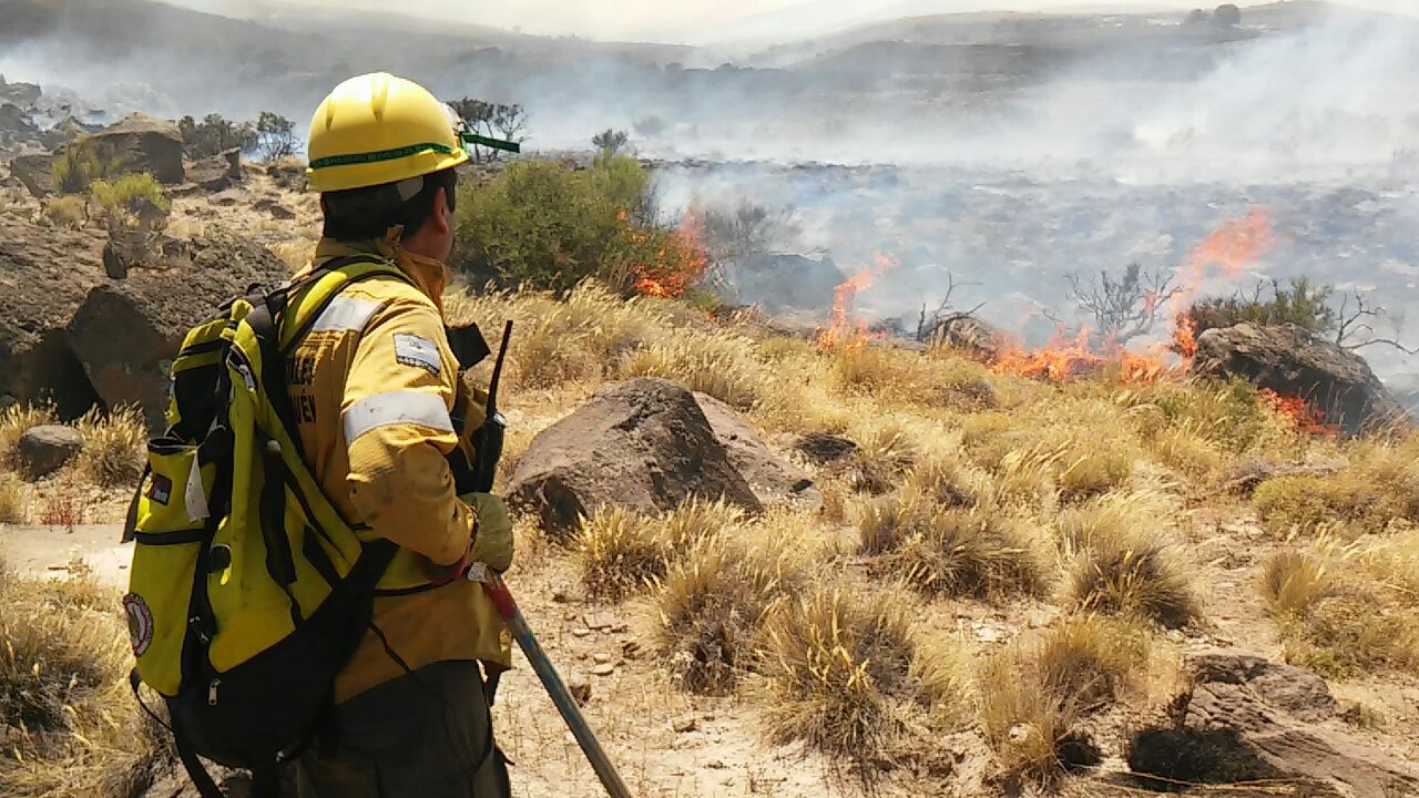 Tierra arrasada, negra de ceniza, estéril y humeante. Así era la huella que dejaba el paso de la cabeza de fuego que avanzaba al ritmo de los fuertes vientos que complicó las tareas. Hoy martes (31-01-17) intentarán sofocarlo totalmente. Anoche, el incendio en el cerro Santa Julia llevaba más de 24 horas sin control y en la tarde de ayer ráfagas de 40km/hora y una temperatura de casi 30 grados no daban tregua a los casi 150 brigadistas que combatían las llamas. Fotos: José Cusit