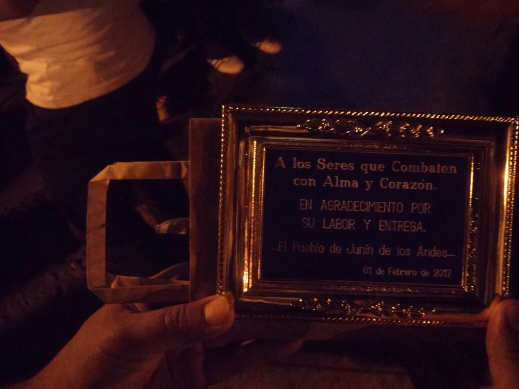 Desde la estancia Palitué, lugar afectado por los focos de incendio, emitió un público agradecimiento hacia quienes trabajaron en las zonas afectadas: “A un maravilloso conjunto de hombres y mujeres que sin mirar ni tiempo ni medir esfuerzo, trabajaron incesantemente hasta controlar el fuego que se había apropiado de la montaña. Desde las autoridades de la Provincia que trabajaron a la par de todos, hasta los vecinos de Junín de los Andes”, firmado por la familia Hiriart – Labadie .