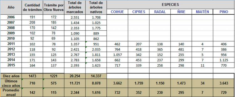 - 2.035 árboles nativos se tiraron en el 2012. Fue el número más alto en la última década.