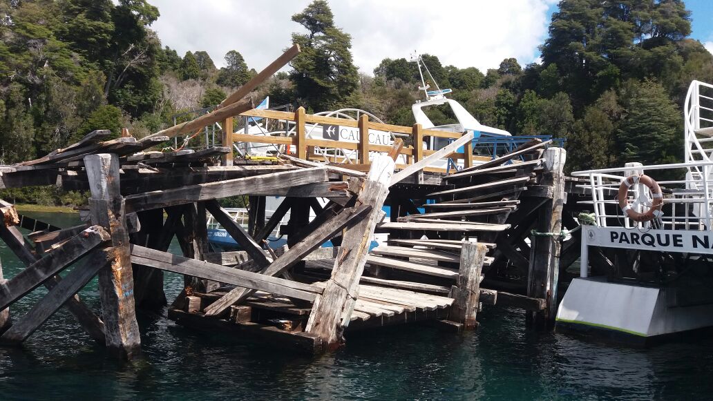 Este mediodía un catamarán proveniente de Bariloche se llevó por delante el muelle principal del Bosque de Arrayanes.