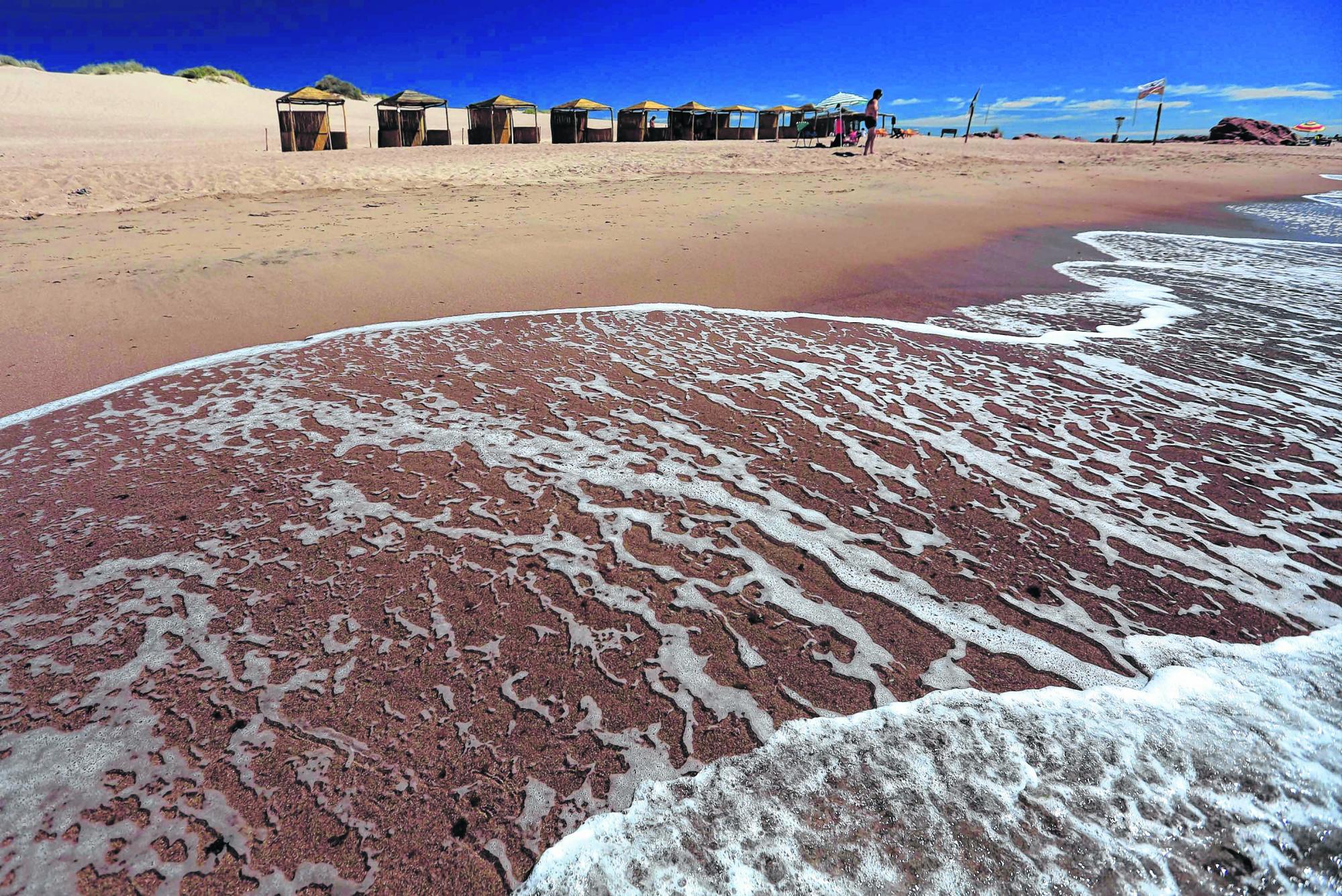 La naturaleza aporta lo suyo para que este rincón tenga un sello distintivo. Primero, por la presencia de una arena suave que tapiza la costa y se convierte en médanos que se multiplican en toda su extensión. Y por esas rocas que le dan su nombre, que le deben su color a un mineral llamado feldespato, y aparecen a cada paso, con sus bordes redondeados. Como formando recodos que invitan a reclinarse, mientras el mar ruge lejos.