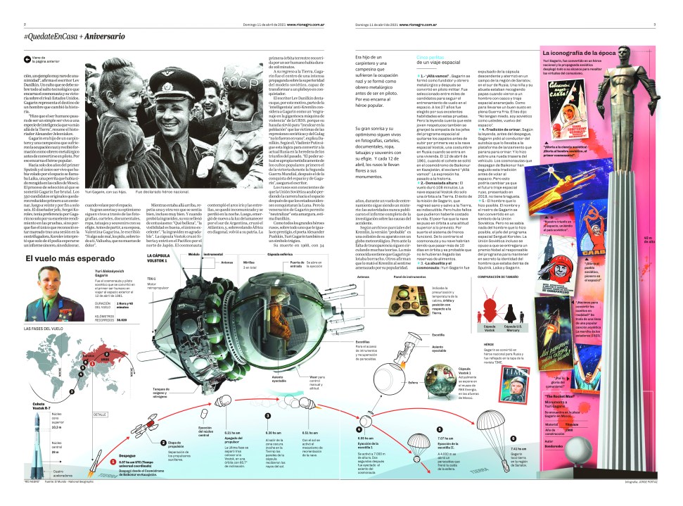 La infografía fue publicada el 12 de abril en el suplemento «Quedate en casa», en coincidencia con la fecha del viaje de Gagarin en el Vostok-1.