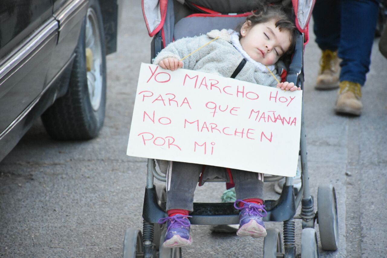Al finalizar la marcha, se leyó un escrito mientras cada una de ellas sostenía un cartel que conformaba la palabra “BASTA”. Además llevaban una bandera que decía “El Estado y las instituciones son responsables”.