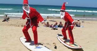 En la época de Navidad, las temperaturas australianas pueden superar los 30 grados centígrados, por lo que, naturalmente, muchos australianos se dirigen a la playa. Familias y amigos hacen picnics y practican natación y voleibol. A menudo, hasta aparecen algunos Santas surfistas. Se sabe que un par de playas de Sydney, destino de viajeros extranjeros y mochileros han sido testigos en el pasado de fiestas tan salvajes a tal punto que se han tenido que implementar estrictas prohibiciones de alcohol en la zona.