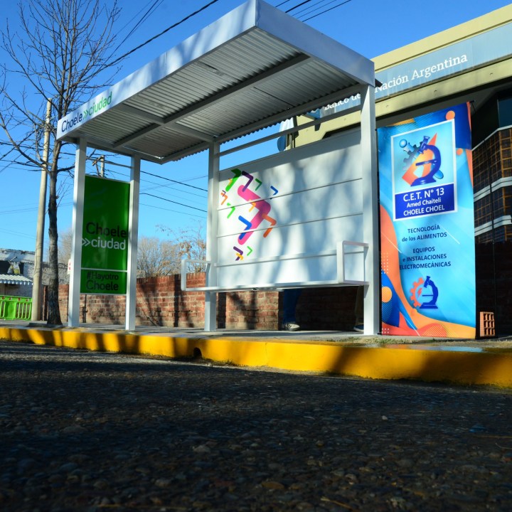 En el marco de las primeras actividades por el 146° aniversario de la ciudad, se inauguró una garita para la parada del colectivo interurbano. La estructura fue instalada en un punto clave del centro choelense: la esquina de San Martín y 9 de Julio, sobre la vereda del Banco Nación, una zona de alta circulación de vecinos que utilizan el transporte público a diario.