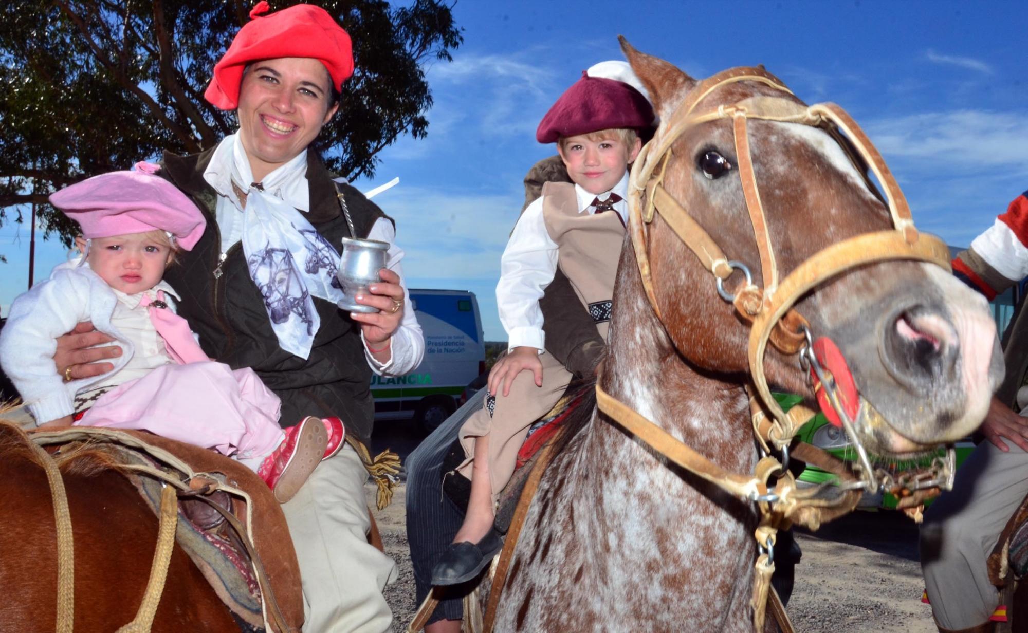 El homenaje sobre el monumento del cerro de la Caballada contó la presencia de un grupo de gauchos que integran la agrupación “Cata” Villarino, un mujer que en vida visitaba con sus gauchos esa lomada para conmemorar esa gesta lo que luego dio lugar a que las autoridades decidan mantener ese escenario para actos oficiales.