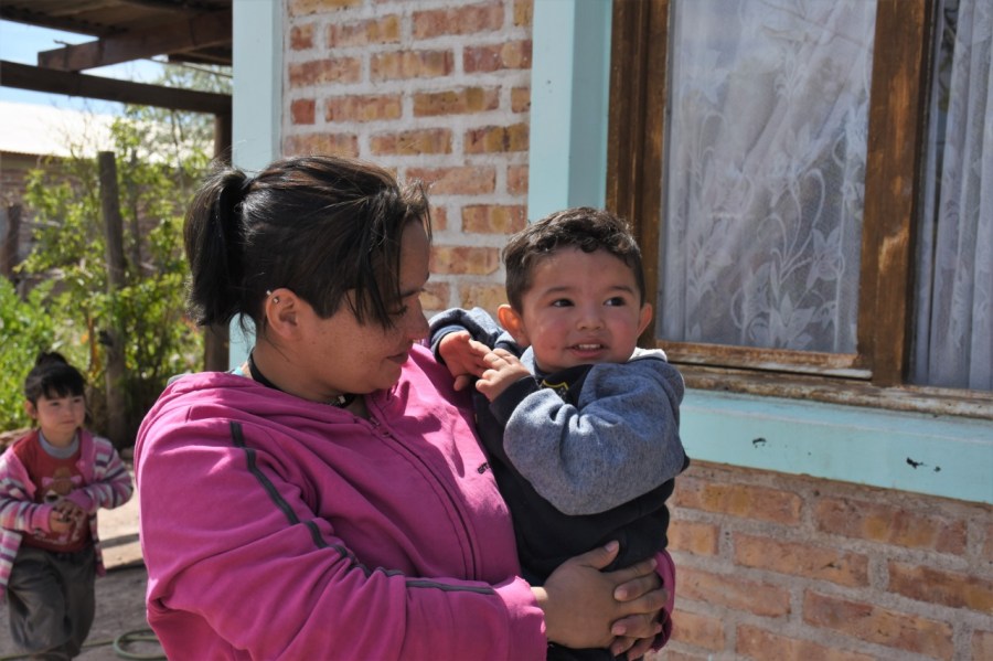 Analía Elsa junto a su hijo más pequeño. Foto Emiliana Cantera.
