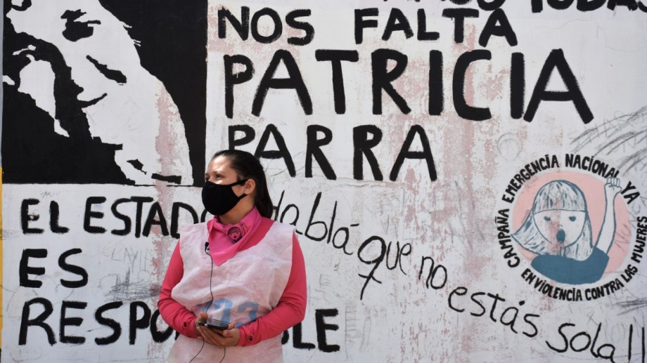 “Nunca imaginé en mi vida que iba a vivir algo así pero sí, no estamos todas, falta mamá”, dice Magdalena Rosa al recordar a su madre Patricia Parra quien el 10 de octubre de 2018 fue asesinada por su expareja, Eduardo Valenzuela, en el barrio Colonia Fátima de Cervantes.  Ella tiene 30 años y trabaja en el comedor que funciona en el centro comunitario, a la entrada del barrio. En una de las paredes del exterior hay un mural que se ve desde la ruta, donde las palabras gritan en blanco y negro: “No estamos todas, nos falta Patricia Parra”. La semana pasada participó junto a sus compañeras de una actividad. De espaldas al muro, se sacó fotos con su pañuelo rosa y la subió a las redes para reclamar por la declaración de la emergencia nacional en violencia de género. Pero Magdalena no mira el mural porque no puede.