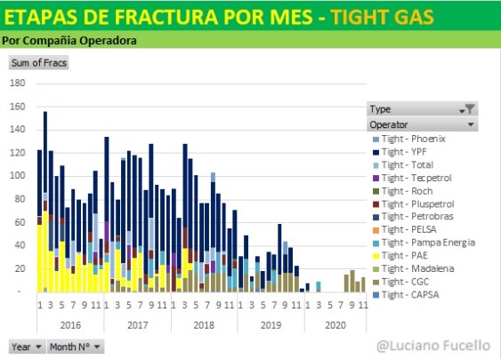 Y en este año, los yacimientos tight de Neuquén sumaron apenas 12 etapas de fractura entre dos bloques de YPF y Pampa Energía, y la prolífera área Estación Fernández Oro de Río Negro no suma nuevas fracturas desde julio del año pasado.