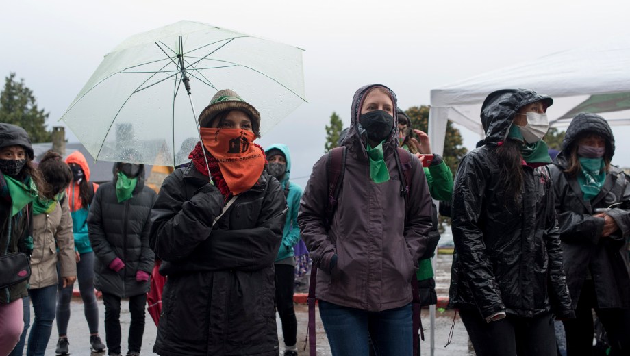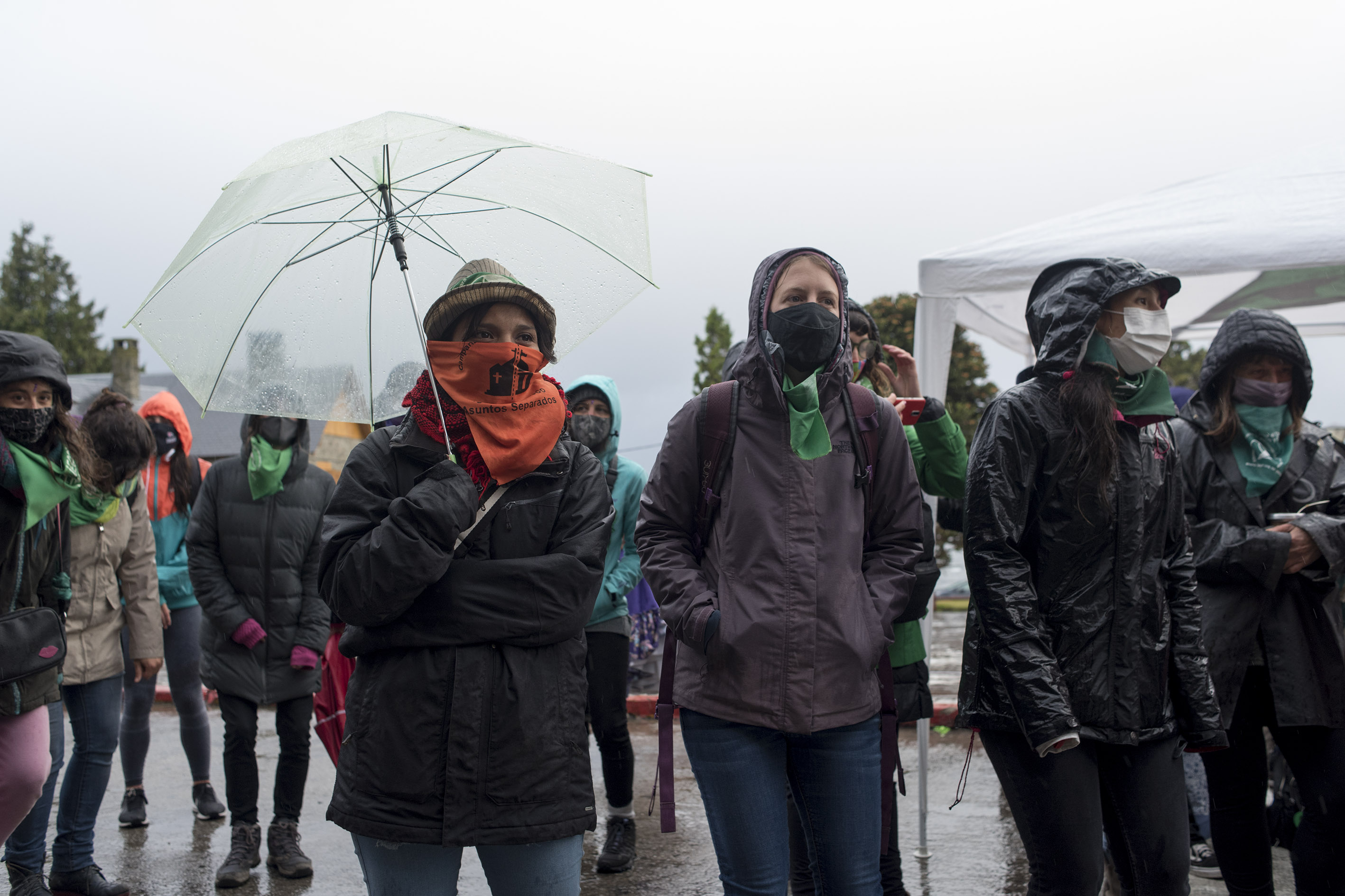 La vigilia en apoyo al proyecto de ley de despenalización y legalización del aborto comenzó esta tarde de jueves bajo una intensa lluvia y bajas temperaturas, que pusieron a prueba a las mujeres y militantes de varias organizaciones sociales, que se congregaron en el Centro Cívico de Bariloche.