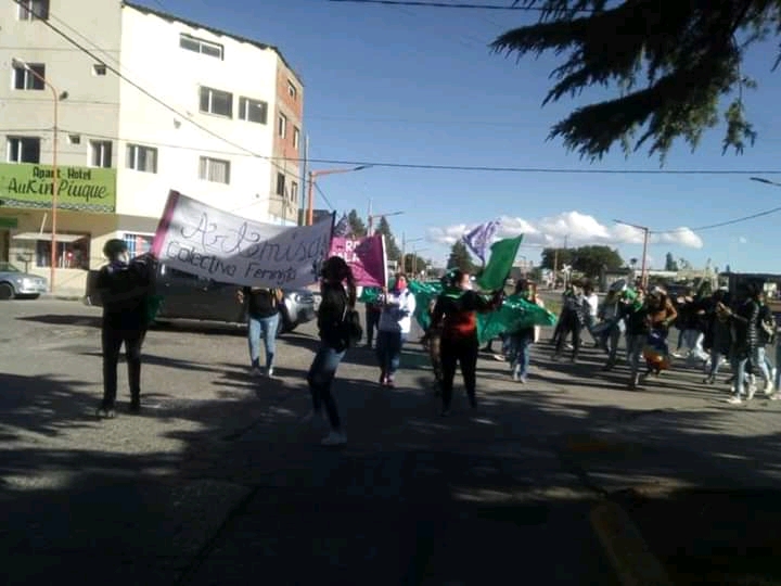 Zapala también fue otra de las sedes donde las actividades pudieron concretarse. Allí las mujeres se manifestaron por las calles, con mucho color y banderas con consignas.