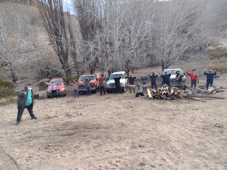 Además también llevaron motosierras y otras herramientas, con las que cortaron las ramas secas de una arboleda ubicada a una distancia importante de la vivienda de Laciar y le dejaron una gran cantidad de leña trozada para enfrente la crudeza del invierno.