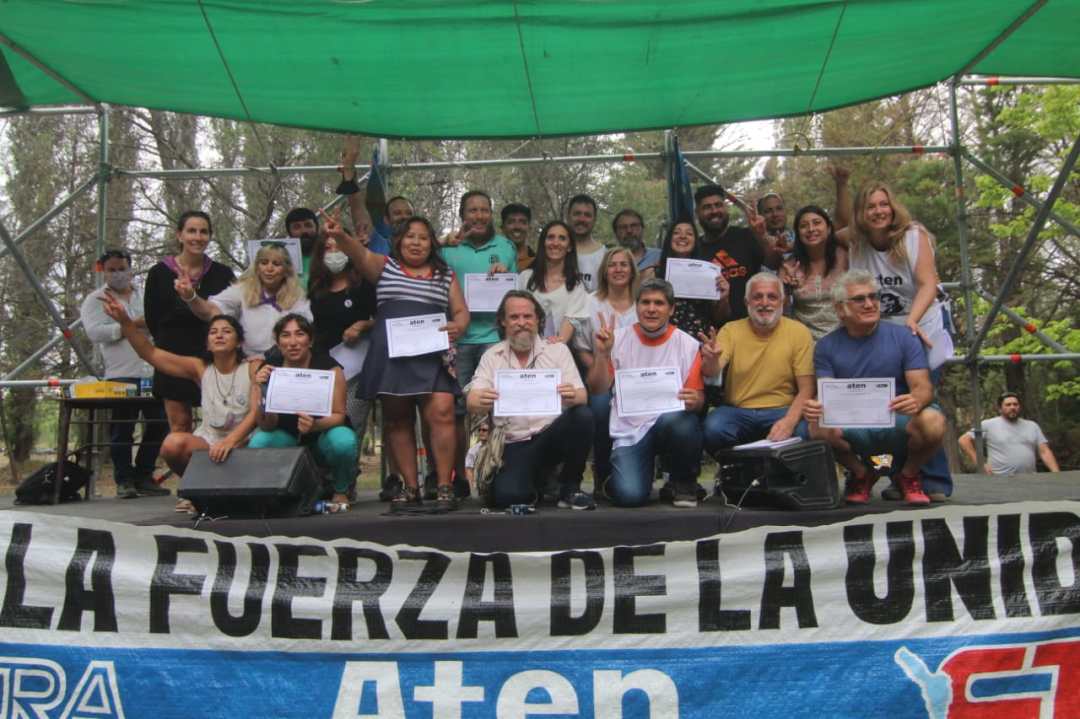 Con bombos, batucada, choripán, baile y la música de Jonathan Lillo, el gremio docente ATEN realizó el acto de asunción de las nuevas autoridades del período 2021-2025. Los y las candidatas, que fueron elegidos para integrar las comisiones directivas del gremio y congresales de Ctera, recibieron sus certificados.