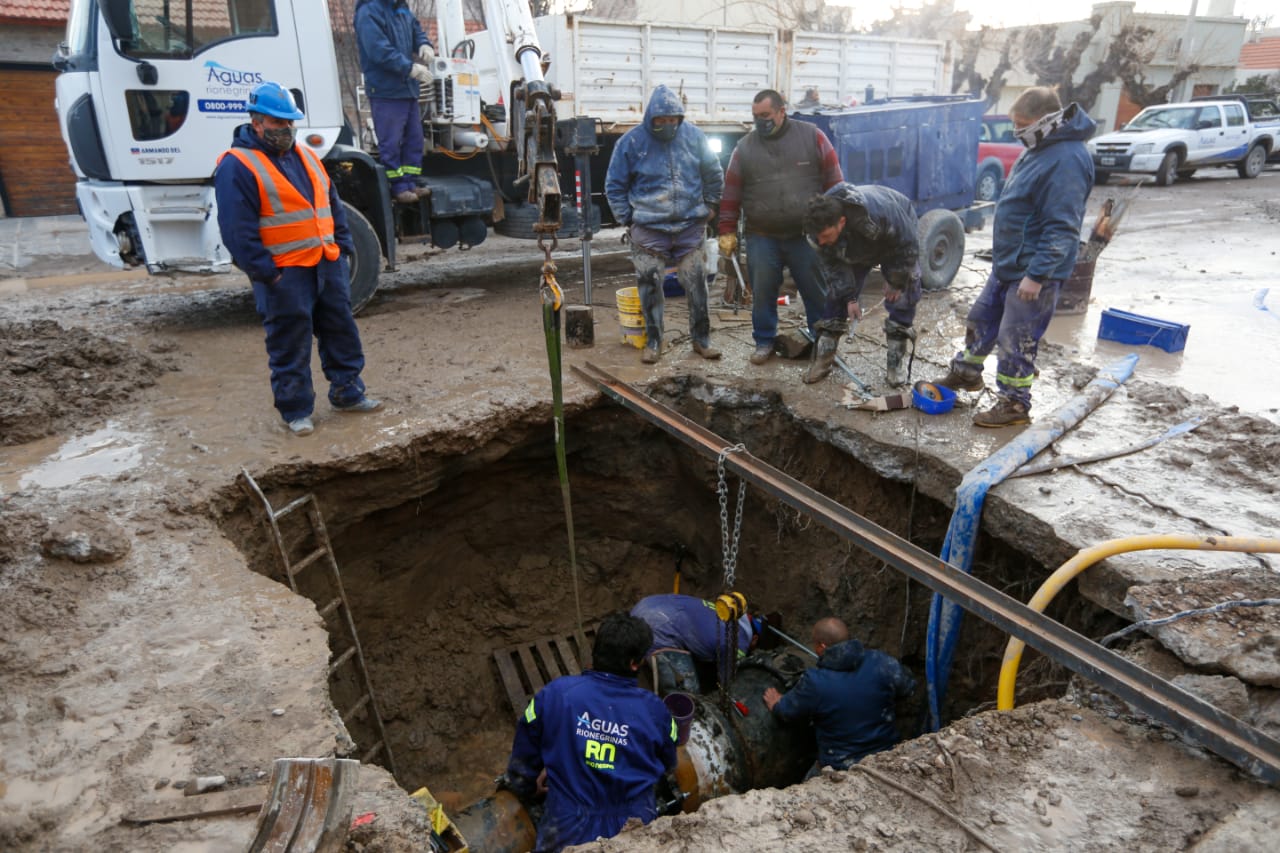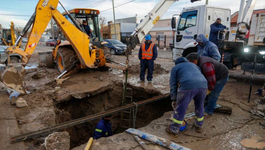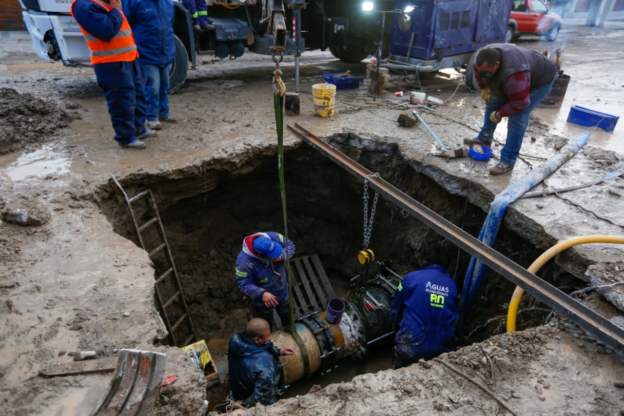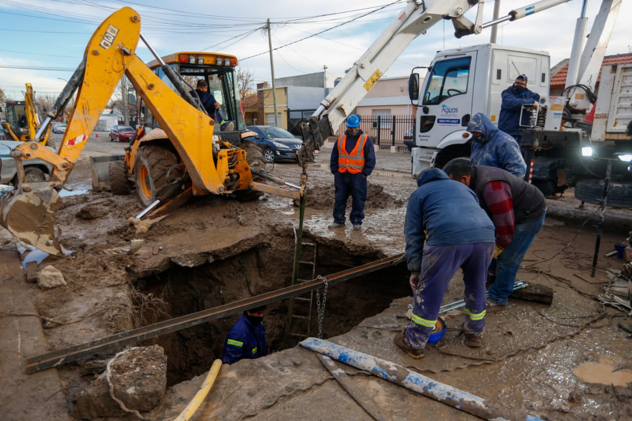 Tras la reparación y cuando el servicio estaba siendo restablecido, apareció una segunda falla a pocos centímetros del lugar de reparación lo que anoche dejó varias calles anegadas de la zona céntrica.