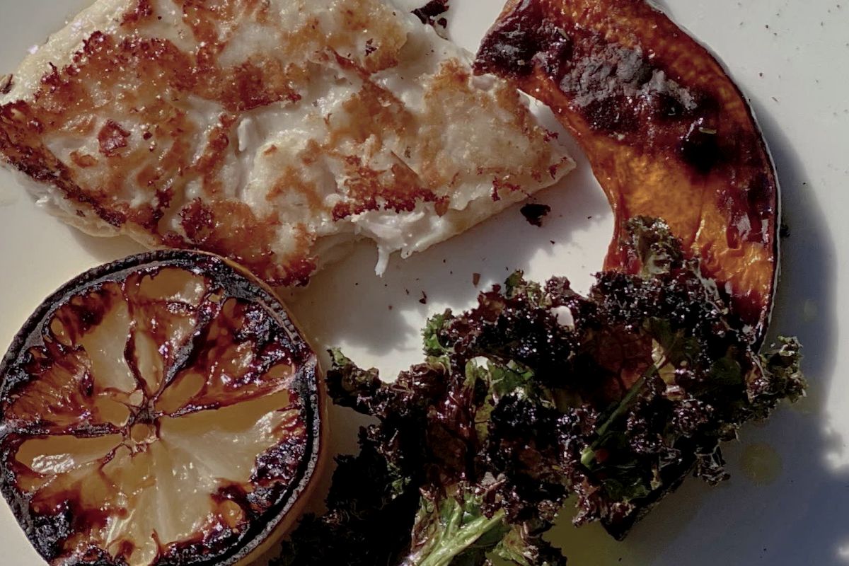 Brótola con limón y kale asado de Christian Petersen