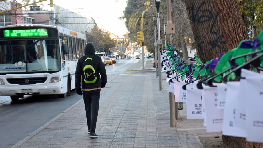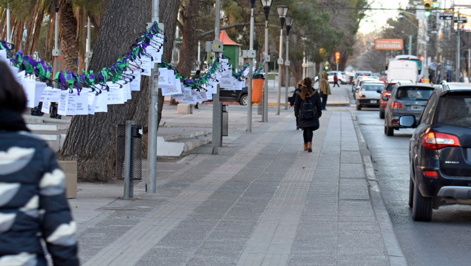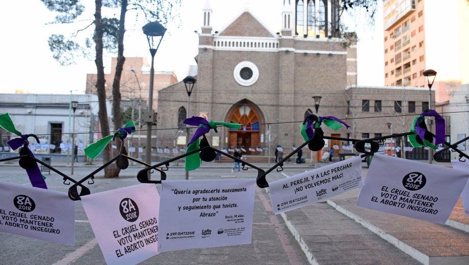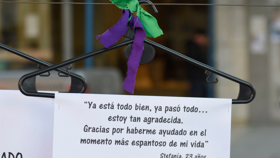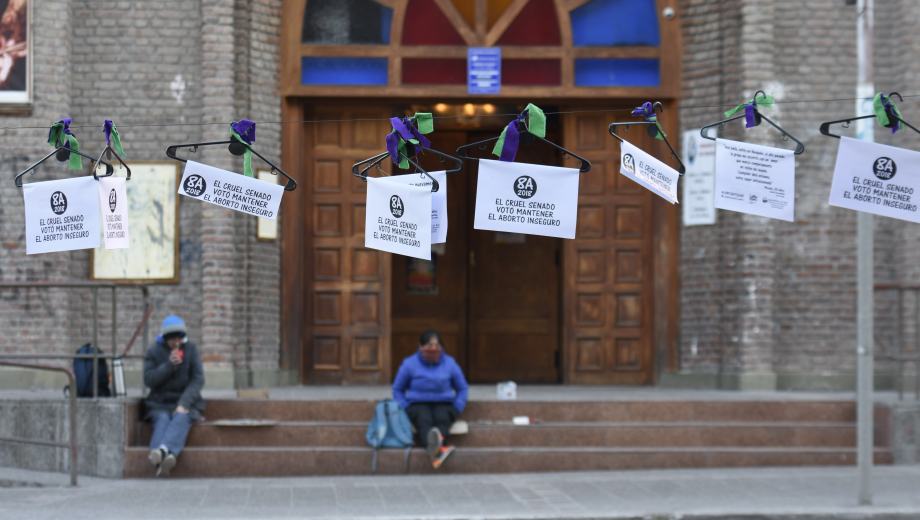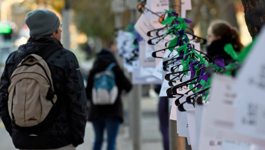 «El cruel Senado votó mantener el aborto inseguro». El mensaje está pegado en una de las 500 perchas que fueron colgadas hoy en el centro de Neuquén, al cumplirse un año del rechazo al proyecto de interrupción voluntaria del embarazo que contaba con media sanción de Diputados.