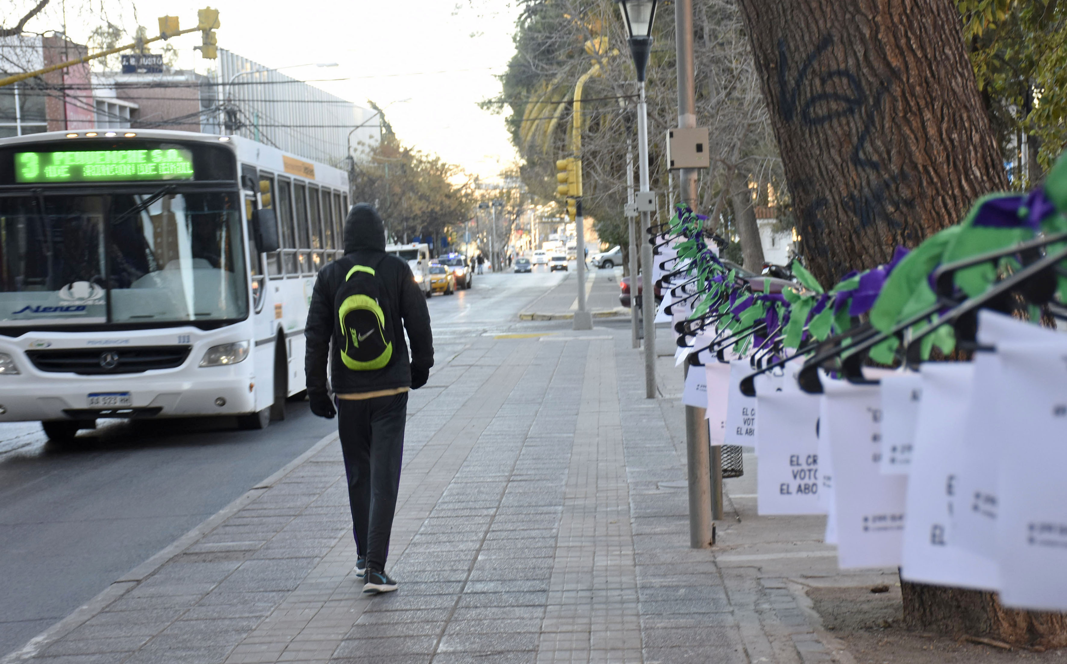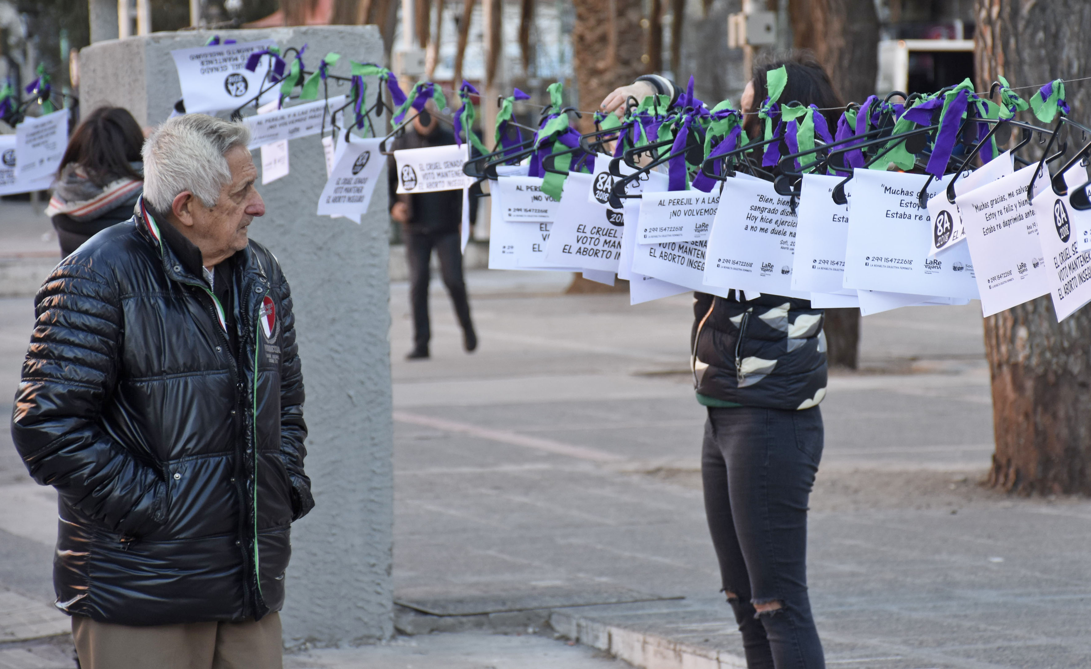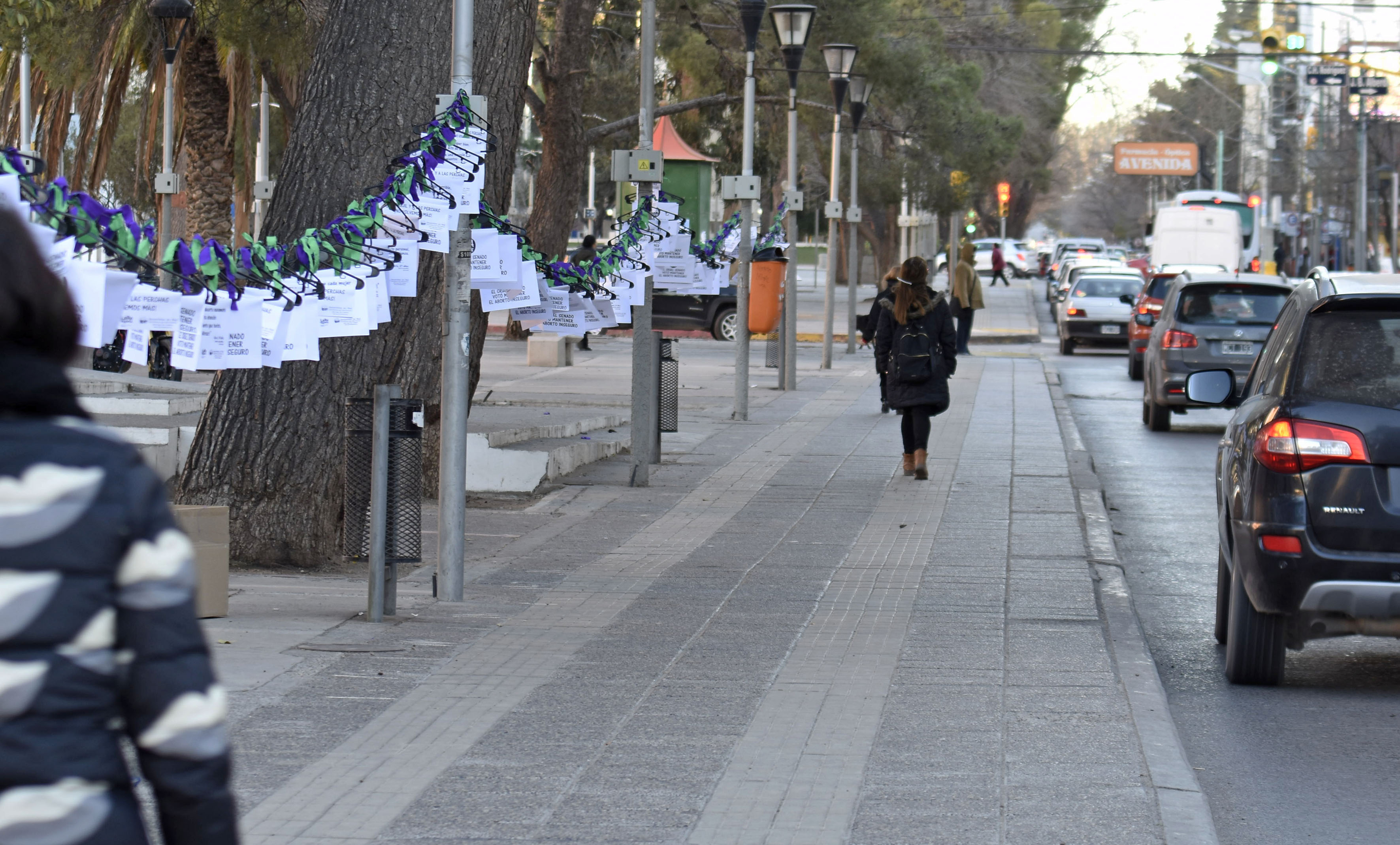 «El cruel Senado votó mantener el aborto inseguro». El mensaje está pegado en una de las 500 perchas que fueron colgadas hoy en el centro de Neuquén, al cumplirse un año del rechazo al proyecto de interrupción voluntaria del embarazo que contaba con media sanción de Diputados.