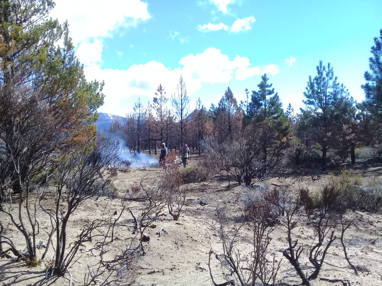 Sanhueza describió que habían cortado pinos para armar unas barricadas. Dijo que el grupo está en un sector que tiene vegetación, en la parte alta del campo, donde hay agua, porque en gran parte de esas tierras solo hay plantación de pinos.