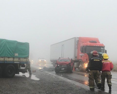 Un Fiat Uno impactó contra el acoplado de un camión Merdeces Benz. El siniestro ocurrió en el kilómetro 68, una zona muy deteriorada de la calzada.