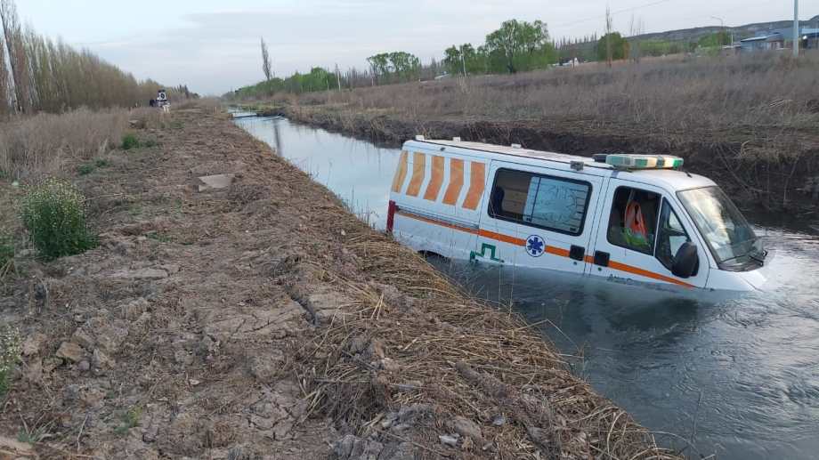Como consecuencia de un choque semifrontal, una ambulancia del ministerio de Salud de Río Negro cayó al canal de riego lindero a la Ruta Nacional 151. El accidente se produjo esta madrugada en el kilómetro 17 de la calzada, a pocos metros de uno de los ingresos a Cinco Saltos.