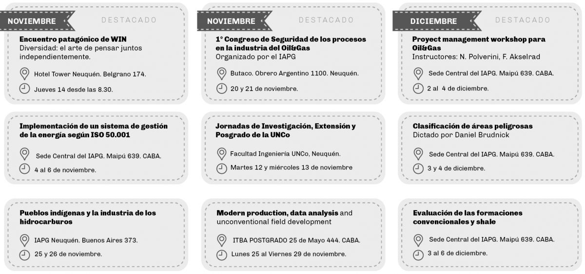 Entre ellas las 6ª Jornadas de Recuperación mejorada que se enfocará en cómo incrementar los factores de recuperación en los yacimientos maduros.