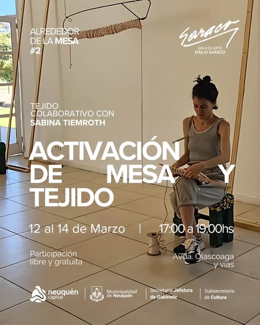 Invitamos a tejedoras/es, artistas y público curioso a acompañarla del 12 al 14 de marzo de 17 a 19 hs