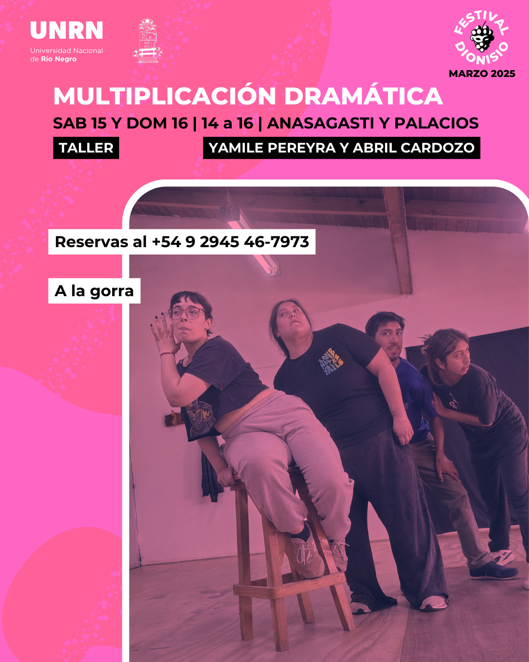 👉 Taller de creación colectiva donde los participantes generarán material escénico a partir de improvisaciones guiadas desde ciertas pautas. A través de la exploración de una escena inicial, el grupo multiplica y transforma las experiencias mediante resonancias personales y grupales, ampliando el sentido original. Se fomenta la creatividad, la expresión emocional y el trabajo en equipo.