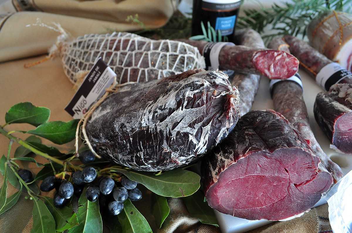 – Jamones de jabalí, venado, cordero, guanaco. Salames de jabalí, venado, cordero. Picadas de escabeches y queso ahumado.