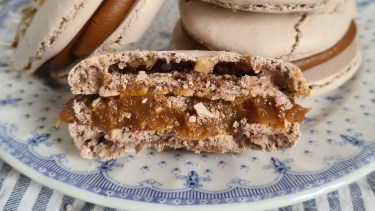 Alfajores de merengue con cacao y nueces