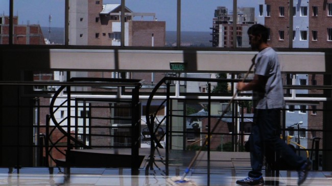 De lunes a viernes, de 7 a 13, Maxi es uno de los responsables de mantener limpio el imponente edificio de la legislatura neuquina. “Me levanto a las 5 y media de la mañana. A las 7 ya tengo que estar listo abajo cambiado, y después vengo al hall a mopear, tratando de sacar todos los residuos que quedaron del día anterior, después sigo por las oficinas de protocolo”. Solo algunos pocos saben de su oculto y sacrificado oficio.