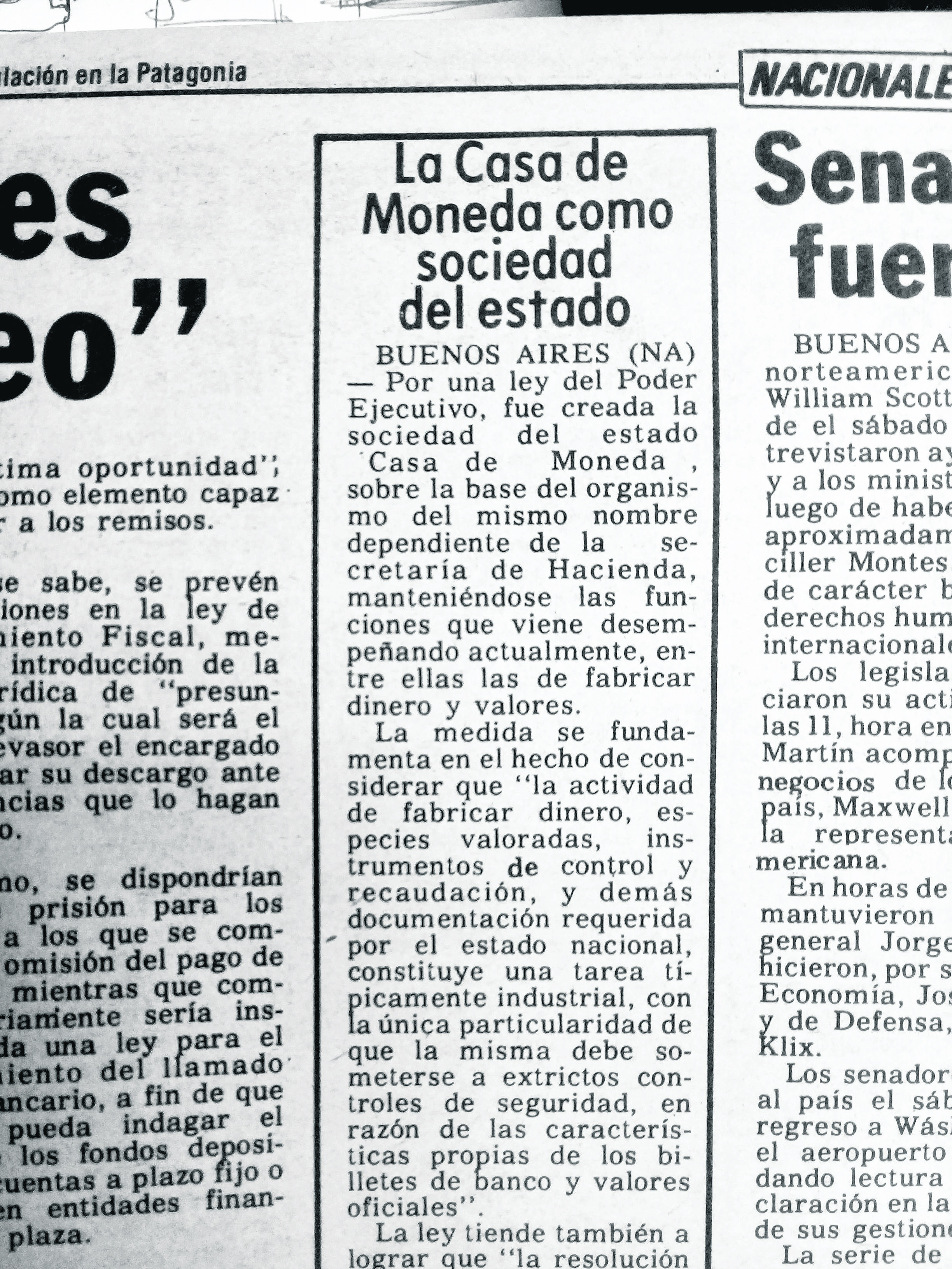 22 julio de 1977: Por una ley del PE fue creada la sociedad del estado “Casa de Moneda”, sobre la base del organismo del mismo nombre, dependiente de Hacienda.
