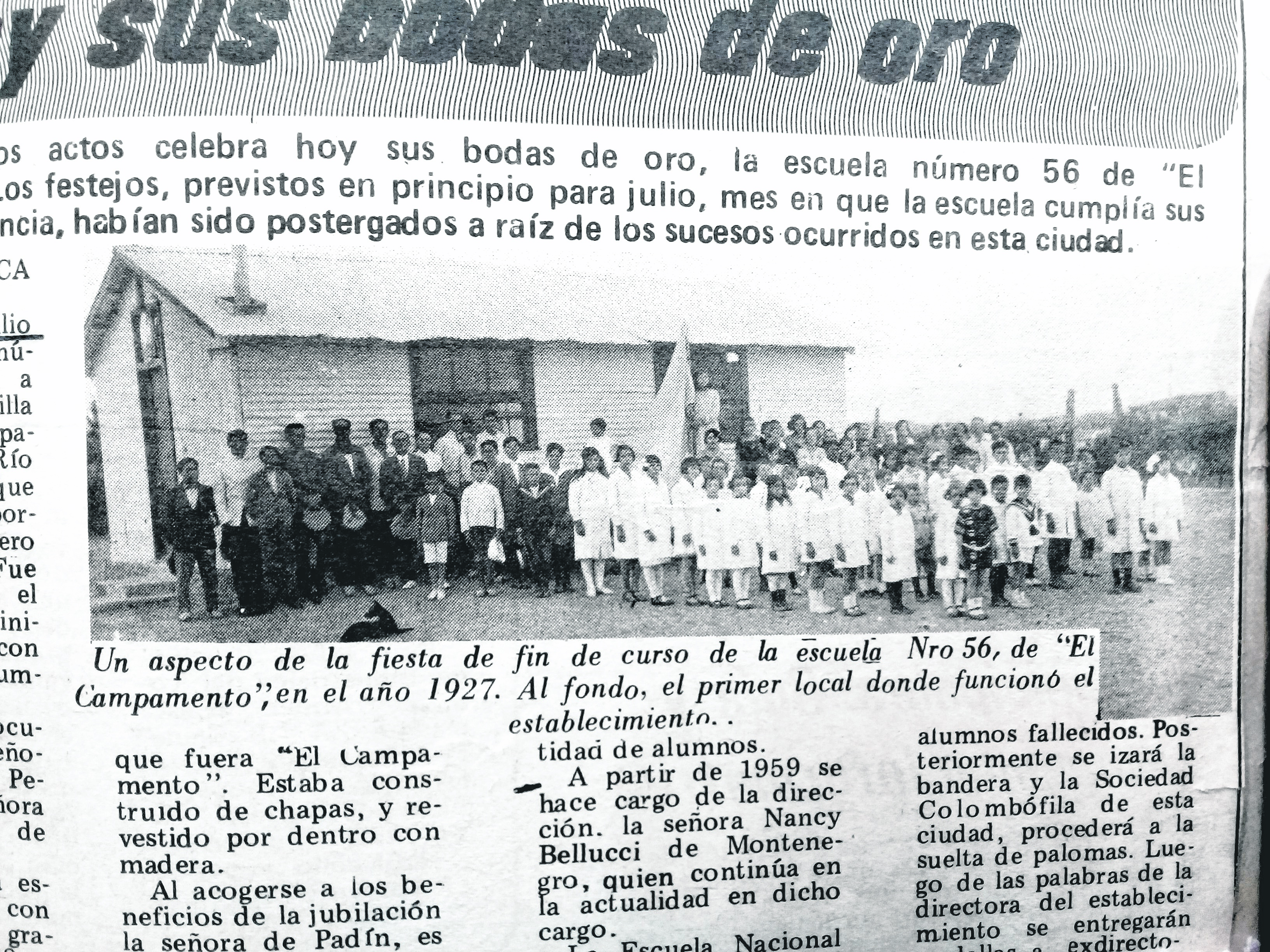 Creada el 28 de julio de 1922, la escuela número N° 56 comenzó a funcionar en una casilla cedida por el “Campamento de Obras del Río Negro Superior”, dirigida en ese momento por el ingeniero Rodolfo Ballester.