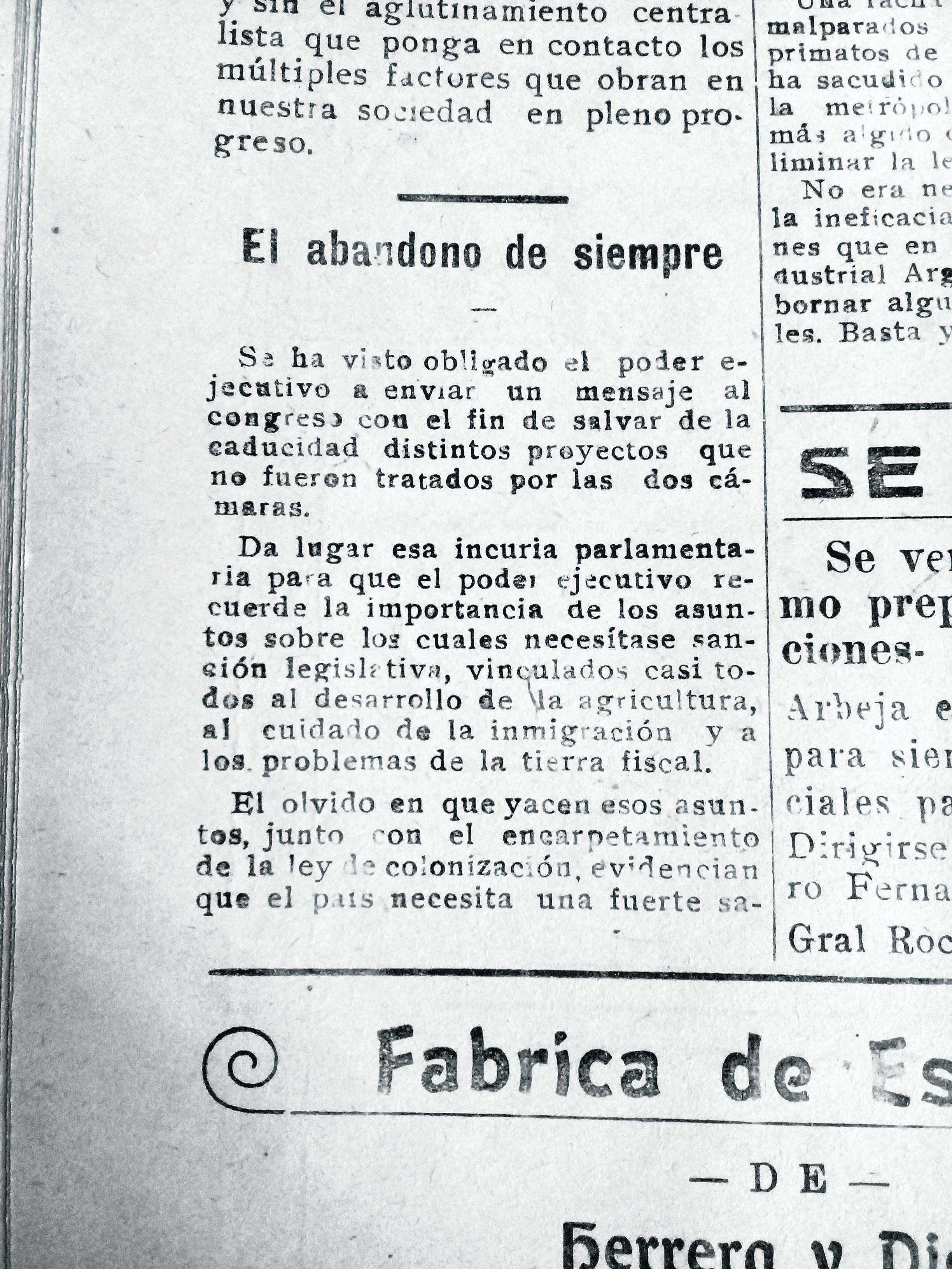 8 de junio de 1925: Quejas por las demoras del Congreso en tratar temas de la región: desarrollo de la agricultura, cuidado de la inmigración y tierra fiscal.