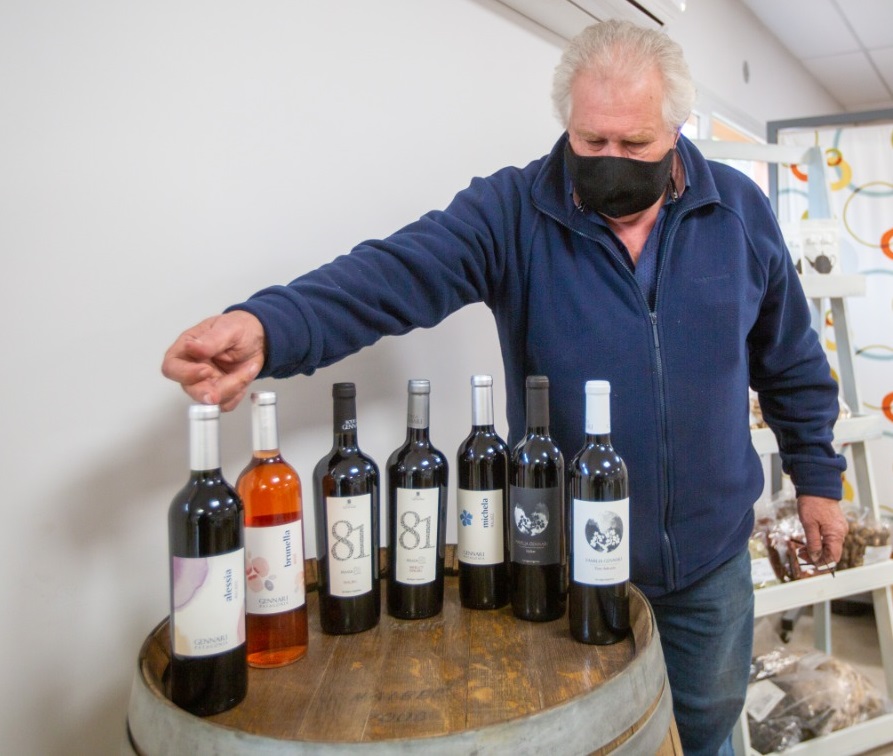 Cerca de Aonikenk, Osvaldo Gennari llega al bodega que lleva el apellido de su familia como bandera. Cuenta el papá llegó desde Colonia Rusa, la mamá desde Mainqué y se instalaron en esas tierras a hacer dehidratado de peras, luego de ciruelas, duraznos y manzanas.