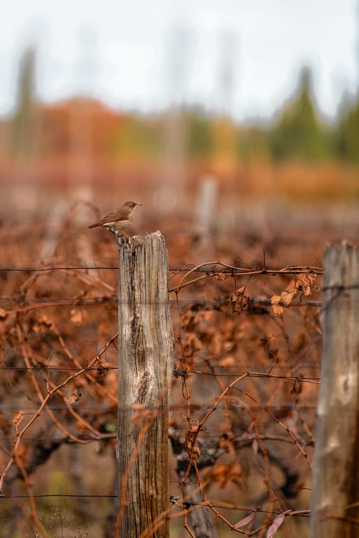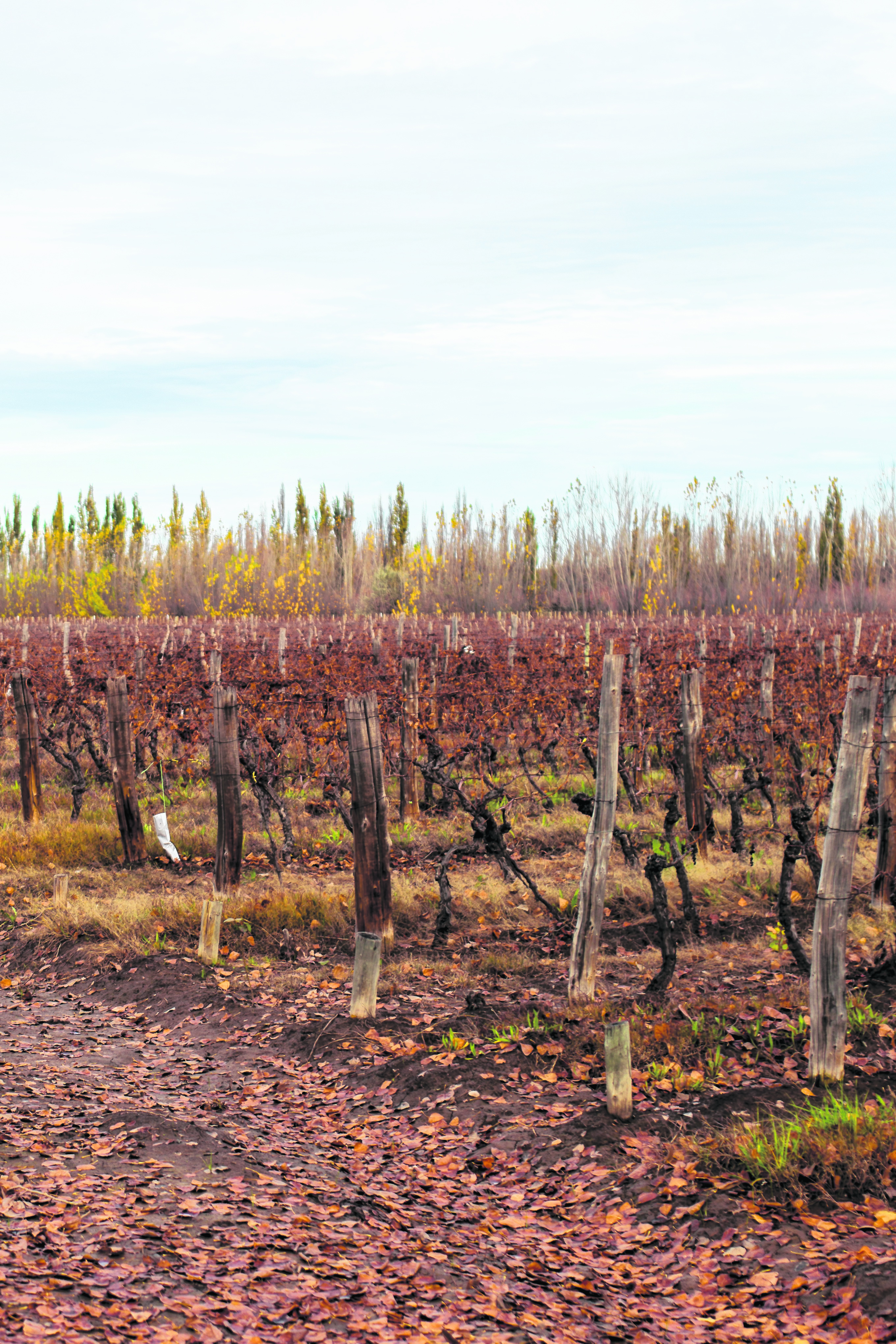 El camino está flanquedo por álamos amarillos que se funden en el morado de los ciruelos y el celeste de un cielo sin sol. El auto zigzaguea por las calles, en un tiempo de pandemia difícil, en el que la belleza de las chacras entrega un respiro. Por las ventanillas sucias, que dejó la lluvia días atrás, se ven las viñas alineadas que se abrazan al alambre. Como el resto de las plantas perdieron sus hojas y se preparan para su siesta de invierno. Gaspar Rastrilla abre la tranquera y pide que lo sigan a la bodega en la que cada día le saca el jugo a este sur.