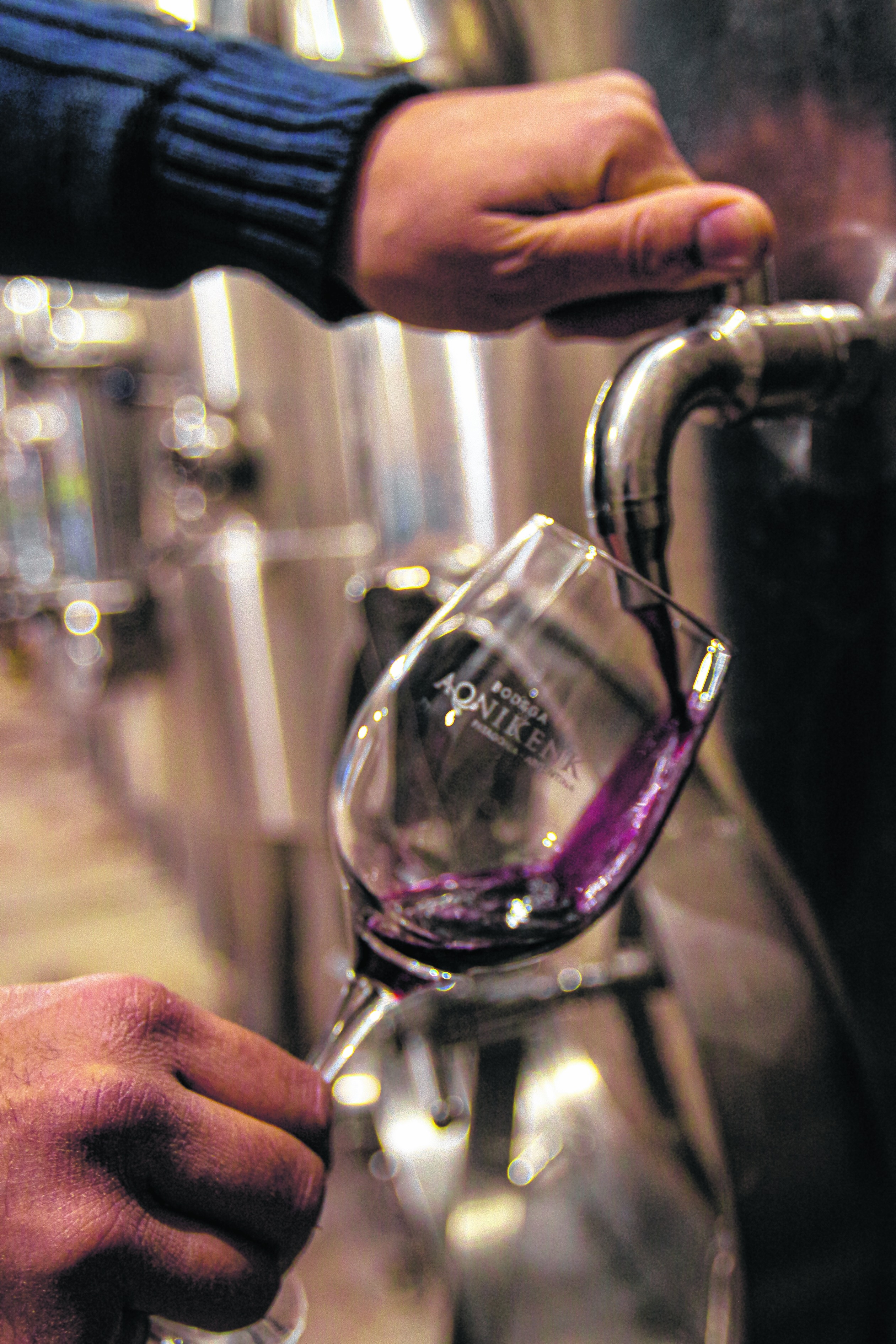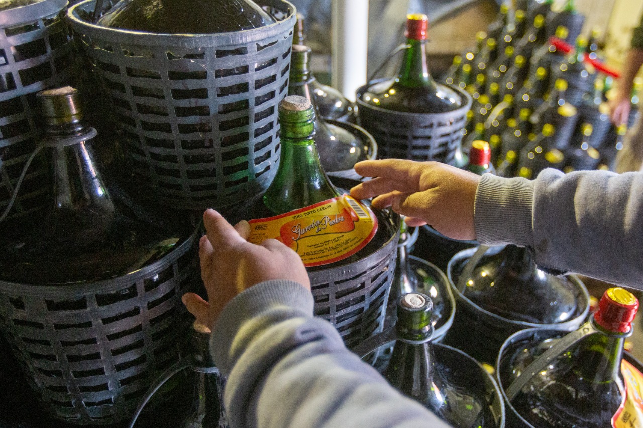 En los salones grandes y frescos de la bodega, dos hombres agarran etiquetas que rezan Garrón de Piedra y las acomodan sobre el vidrio de damajuanas de cinco litros. Osvaldo recuerda otras épocas en las que, en la región, se producían litros y litros del viejo vino de mesa y se envasaban en damajuanas de 10 litros, que llegaban a los vasos en los antiguos pingüinos de cerámica. Luego aparecieron los vinos finos. Se trabajó más en cada uno, con enólogos, vinos con personalidad, que según Osvaldo, son para disfrutar sin reglas.
