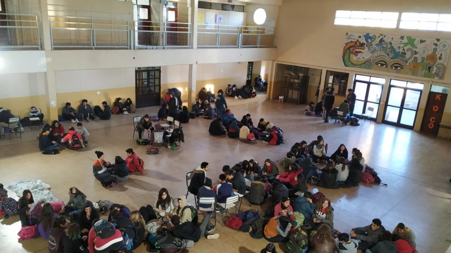 Gran parte del alumnado permaneció en una jornada de reflexión en el Salón de Usos Múltiples reclamando con una “sentada” a raíz de que las autoridades educativas no cumplieron con las promesas de mejorar el sistema de calefacción, a lo que se suma una baja en la presión de ese elemento calefaccionante que circula por las tuberías de los edificios.