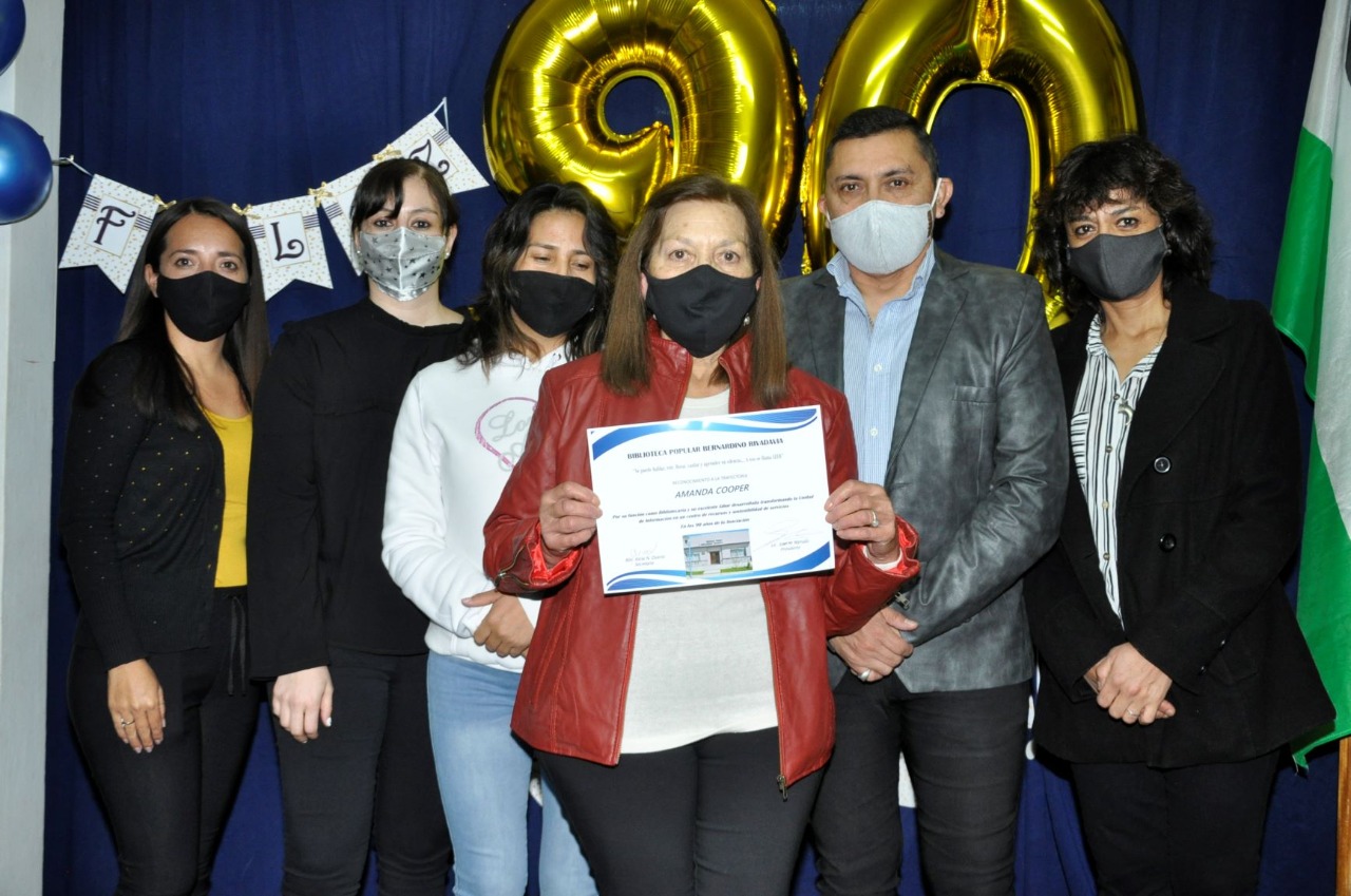 “Amanda es una institución dentro de la institución. Es una persona que hizo mucho por nuestra biblioteca y a la que apreciamos mucho. La vamos a extrañar” señala José María Ramallo, quien preside la Comisión Directiva de la Biblioteca Popular “Bernardino Rivadavia” de Jacobacci. El pasado 10 de mayo, la institución cumplió 90 años de vida. Para celebrarlo se realizó un emotivo acto que sirvió también para homenajear a Amanda Cooper: después de más 52 años trabajando como bibliotecaria, inicio los trámites de jubilación.