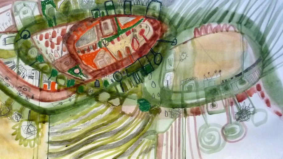 “Yo vengo trabajando desde hace par de años con la idea de habitar, habitar un espacio, un lugar, de recorrerlo, de disfrutarlo, de permanecer en él y de ahí también surgieron lo que pueden llamarse mapas personales en los que a partir de unas huellas digitales que hago con mis manos armo como unos mapas y voy ubicando como símbolos que tienen que ver con momentos personales”, contó Luberti sobre una parte de las obras que integran la muestra.