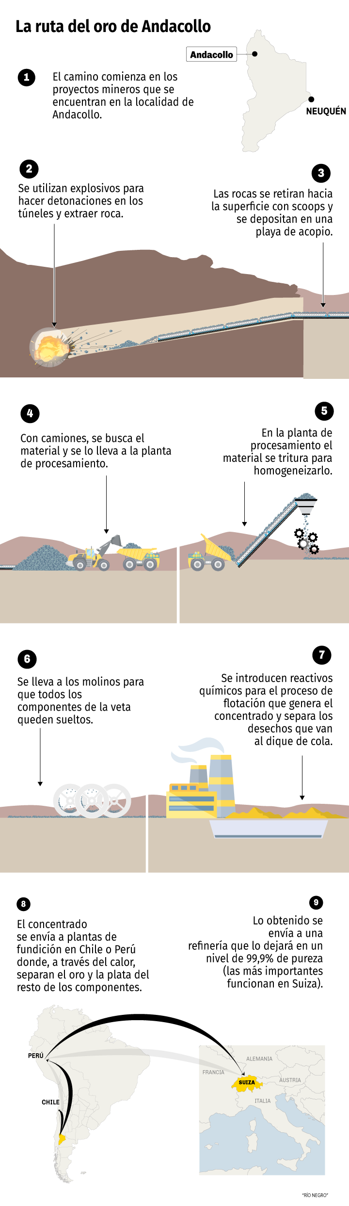 En algún rincón de las 29.000 hectáreas que componen el Proyecto Minero Andacollo quedaron guardados 30 sacos de material concentrado. Pesan unas 30 toneladas cada uno y guardan una suerte de barro denso del que luego saldrán varias onzas de oro.