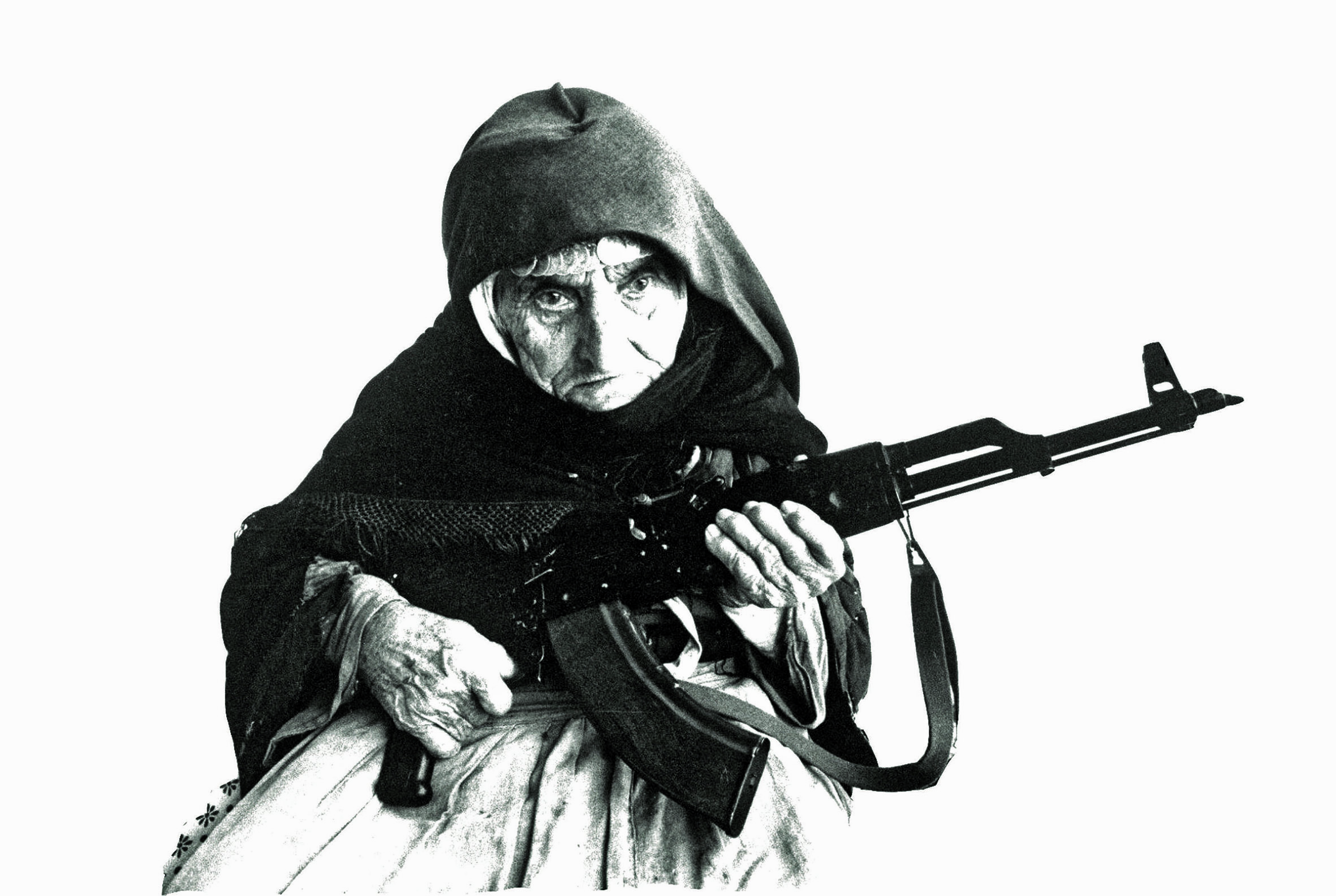 Un buen ejemplo de esto es el magnífico dibujo hecho en tintas que reproduce de modo hiperrealista la fotografía de una mujer armenia de 106 años con un fusil AK-47. “Ante el inminente desalojo de su casa y del territorio donde vive ella decidió quedarse y esperarlos. Es una tinta hecha con bolígrafos y marcadores. Es muy hiperrealista. Es una imagen que tengo en distintas técnicas. En esta muestra se podrá ver la versión hiperrealista y otro muy grande hecho con pinceladas”, adelanta Zerneri.