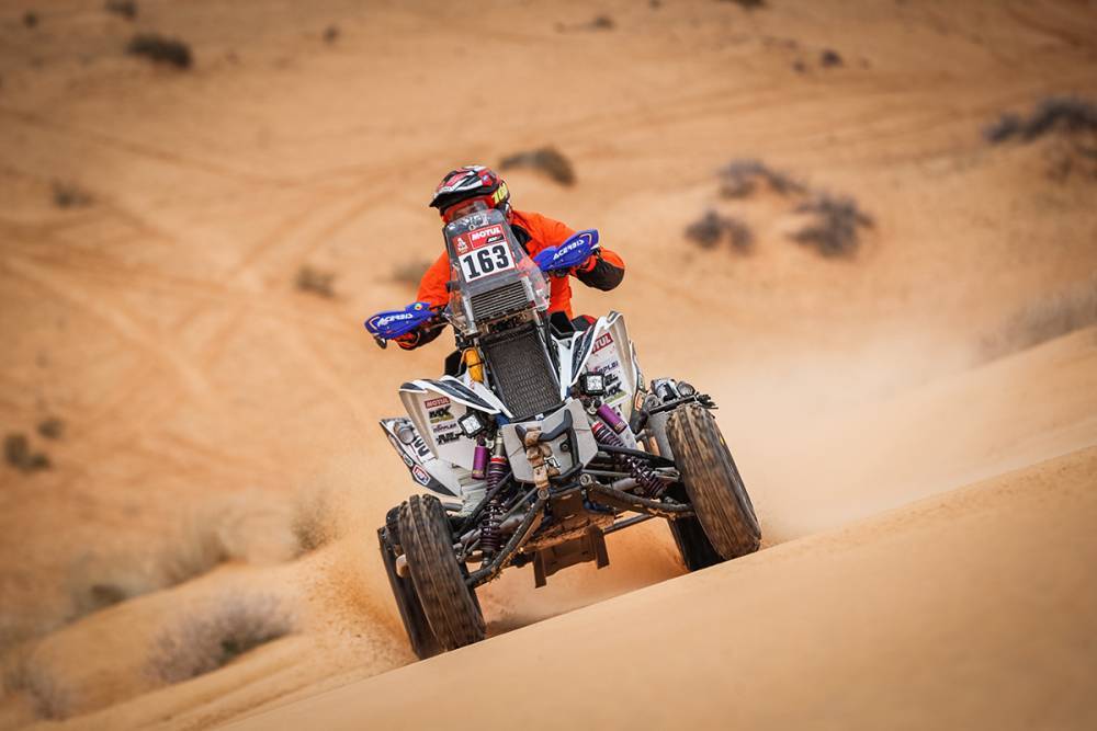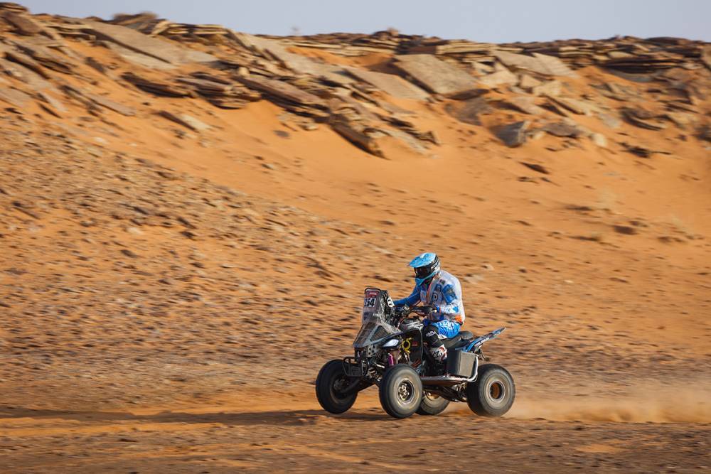 Manuel Andújar cumplió con su misión en la octava etapa del Rally Dakar, en la que terminó segundo y prolongó su liderazgo en la general de la categoría cuatriciclos, en donde se impuso Alexander Giroud, uno de los candidatos a ser campeón.