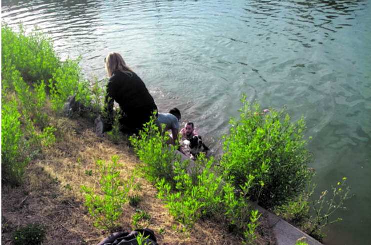 Video: Policías salvaron a un perro de morir ahogado en el Canal Grande, de Roca