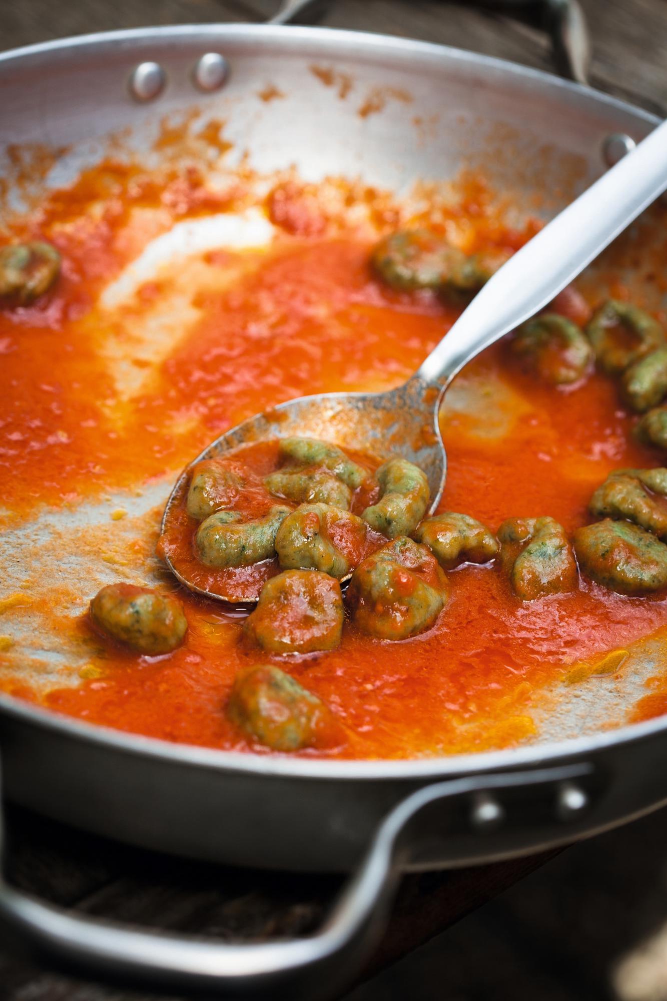 Si prefiere unos ñoquis verdes, añada espinaca hecha puré o hierbas frescas a la masa. Sin embargo, como la espinaca tiene más agua, la masa llevará algo más de harina para no quedar muy pegajosa.