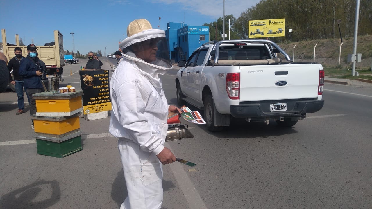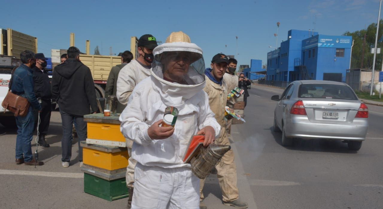 «Venimos a los puentes para denunciar el malestar por el abuso de agrotóxicos hacia las abejas. En segunda medida contra el canon que nos quiere aplicar la Provincia de Río Negro, hacia otros productores que vienen de Buenos Aires y La Pampa, cuando el servicio de polinización es esencial para la vida del Alto Valle y la producción de frutas y hortalizas», explicó el apicultor Roberto Sosa.