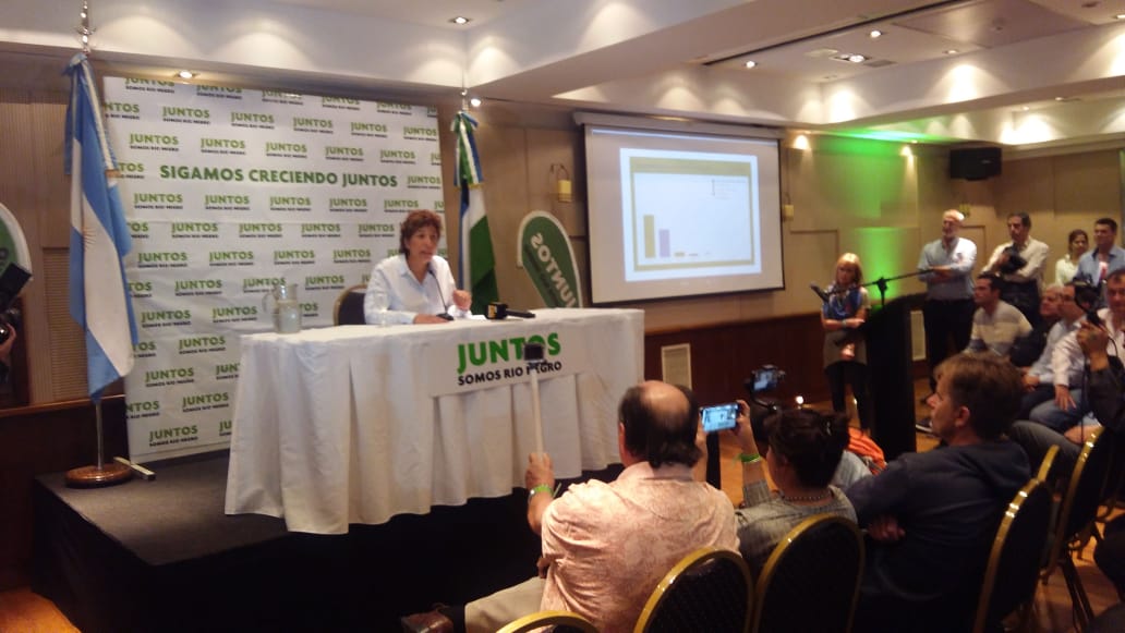 «No he llegado aquí sola, si hoy estamos aquí porque hay miles de rionegrinos y rionegrinas que han construido un proyecto político en todo el territorio de la provincia y que hoy han decidido que ese proyecto político tiene que continuar», afirmó ante militantes y dirigentes entre los que se encontraban los ministros Carlos Valeri y Agustín Domingo, y el intendente barilochense Gustavo Gennuso.