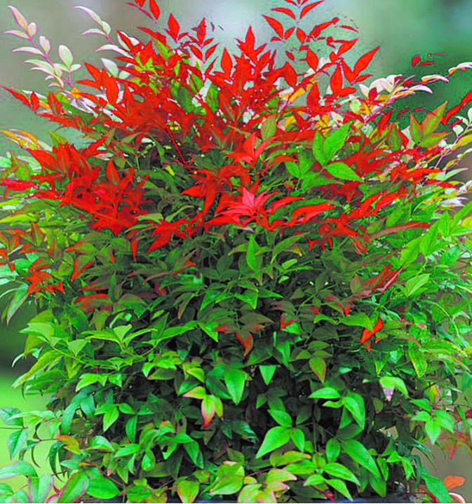 1.-Nandina doméstica: De hojas delicadas que se mantendrán verdes en verano y se tornan naranjas hasta alcanzar el rojo intenso en invierno. “Esta variación cromática de las hojas en las diferentes épocas del año es muy utilizada en el diseño de jardines”, explica la profesional. Su floración, formada en panojas de pequeñas flores blancas ubicadas en las axilas de las hojas nacen en verano. Sus frutos, pequeñas bayas globosas de color rojo brillante permanecen en la planta desde el invierno hasta la primavera. Requiere poca agua y necesita poda. En cuanto a la luz debe estar en sombra o media sombra. V.