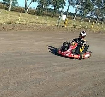 Ardusso probó con un karting de su propiedad de la categoría Internacional, la principal de los cajeros, con motor de 2 Tiempos y seis velocidades.
