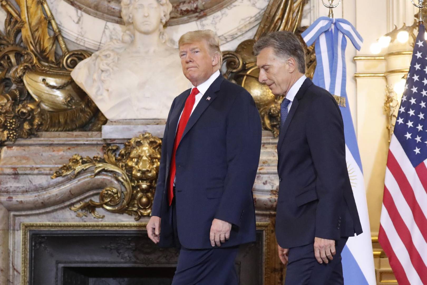 Durante una declaración conjunta que ambos mandatarios ofrecieron en el Salón Blanco de la Casa Rosada, Macri agradeció a Trump el apoyo recibido desde el gobierno norteamericano, por el acuerdo alcanzado con el Fondo Monetario Internacional. “Quiero darle la bienvenida al presidente Donald Trump a nuestro país en su primera visita. Recién venimos subiendo las escaleras y le dije: tardamos 30 años para lograr que vengas”, manifestó Macri junto al presidente estadounidense. “Tuvimos que esperar que ambos fuéramos presidentes para lograr que visites nuestro país”, añadió Macri.